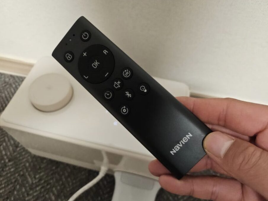 본체 전면의 터치 디스플레이뿐만 아니라 함께 제공되는 블루투스 리모컨으로 누워서도 간편하게 조작할 수 있는 점이 실제 사용 시 정말 편리했어요. 자다 말고 일어나서 본체 버튼을 누를 필요가 없다는 게 얼마나 큰 장점인지 써보신 분들은 공감하실 거예요.