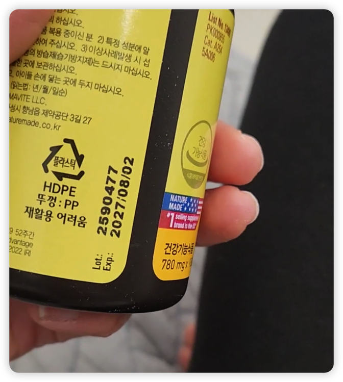 네이처메이드는 미국 판매 1위 브랜드로 잘 알려져 있잖아요. 파마바이트라는 신뢰할 수 있는 제조사에서 만들고, 한국 식약처 기준에 맞춰 정식 수입된 제품이라 안심하고 먹을 수 있습니다. 직구 제품과 달리 성분 함량이 한국인에게 최적화되어 있다는 점도 장기 복용 시 마음이 놓이는 부분이에요. - 압도적인 가성비의 4+1 세트