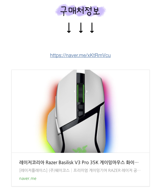 그래서 마우스는 비싸더라도 제대로된 것을 사려고 열심히 알아보는 편이에요. 이번에는 레이저 바질리스크 V3 Pro 35K 게이밍 마우스에 꽃혔습니다. 고민 끝에 내돈내산으로 구매해서 한 달 정도 사용해봤습니다.