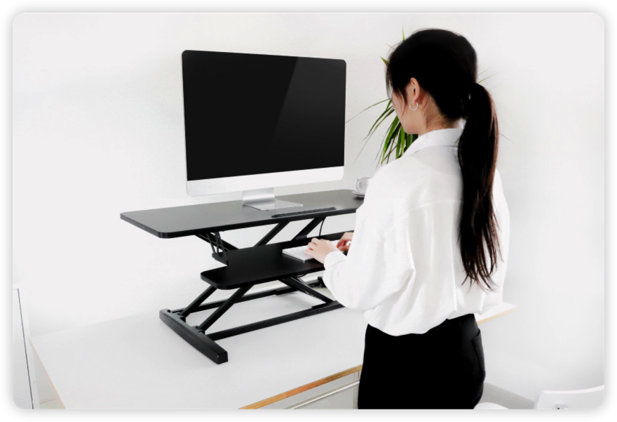 이 제품은 전동이 아닌 수동 방식이지만 조절이 정말 쉬워요. 우측에 있는 레버를 살짝 당기기만 하면 가스 스프링 덕분에 아주 부드럽게 위아래로 움직이거든요. 큰 힘을 들이지 않아도 스르륵 올라가고 원하는 위치에서 딱 멈춰주니까 제 키에 딱 맞는 높이를 세밀하게 맞출 수 있어서 좋더라고요. 업무를 하다가 집중력이 떨어지거나 허리가 찌릿할 때 3초면 바로 일어서서 일할 수 있다는 게 정말 큰 이득이었어요.
