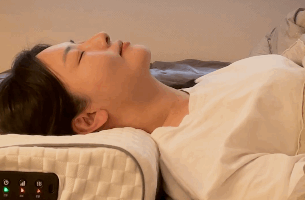 방향도 정방향과 역방향으로 바꿀 수 있어서 마사지가 단조롭지 않았어요. 전원 버튼을 짧게 누를 때마다 롤링 방향이 바뀌는데, 목 뒷부분의 잔근육까지 세밀하게 풀어주는 느낌이라 아주 시원했습니다. 마사지가 끝난 뒤에는 안마구가 원래 위치로 돌아가 목의 C커브를 받쳐주니까 그대로 잠들어도 목이 꺾이지 않아 좋더라고요.