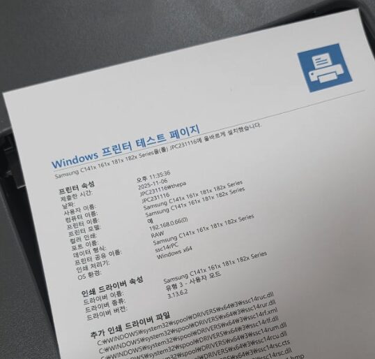 인쇄된 결과물을 보면 텍스트가 정말 또렷하고 선명해서 놀랐어요. 삼성의 ReCP 기술이 적용되어 글자의 테두리를 아주 매끄럽게 처리해 주기 때문에 작은 글씨도 번짐 없이 깨끗하게 읽을 수 있었습니다.