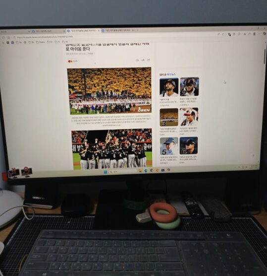 덕분에 혼자 작업할 때뿐만 아니라 옆 사람과 화면을 같이 보며 회의를 하거나 유튜브 영상을 시청할 때도 왜곡 없는 화질을 즐길 수 있어서 아주 만족스러웠습니다. 27인치라는 크기가 책상 위에 두었을 때 한눈에 쏙 들어오면서도 작업 공간이 좁지 않아서 딱 적당한 느낌이 들었어요.