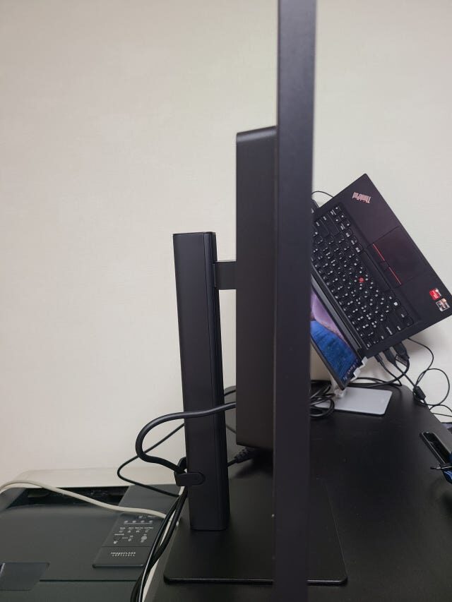 이 제품을 쓰면서 가장 먼저 느낀 단점은 기본 스탠드의 고정된 높이였어요. 틸트 기능으로 각도 조절은 되지만 높낮이 조절이 안 되다 보니 제 눈높이보다 화면이 살짝 낮아서 거북목이 걱정되더라고요.