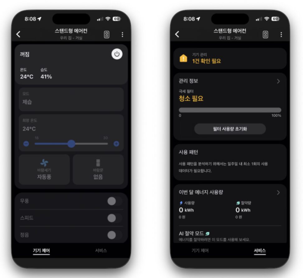 삼성 가전의 진가는 스마트싱스 앱 연동에서 나오는 것 같아요. 외출 중에 집에 들어가기 10분 전 미리 에어컨을 켜둘 수 있는 건 물론이고, 집 안의 가전 상태를 지도로 보여주는 맵뷰 기능도 정말 유용했어요. 스마트 포워드 기능을 통해 소프트웨어가 계속 업데이트되니 쓸수록 점점 더 똑똑해지는 기분이 들더라고요.