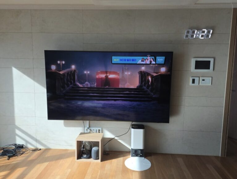 음향 기능인 무빙 사운드 라이트(OTS Lite)도 훌륭했습니다. 화면 속 움직임에 맞춰 소리가 따라오니 별도의 홈시어터 장비가 없어도 거실이 꽉 차는 입체적인 사운드를 느낄 수 있었어요. 얇은 슬림 디자인 덕분에 벽걸이로 설치했을 때 인테리어 효과도 아주 훌륭했습니다.
