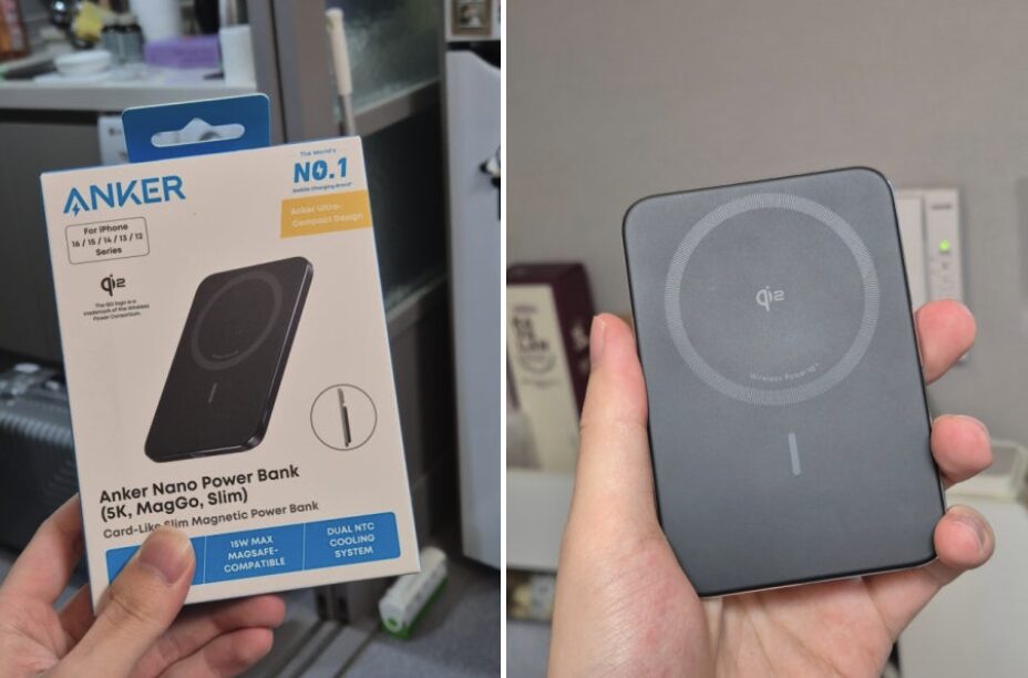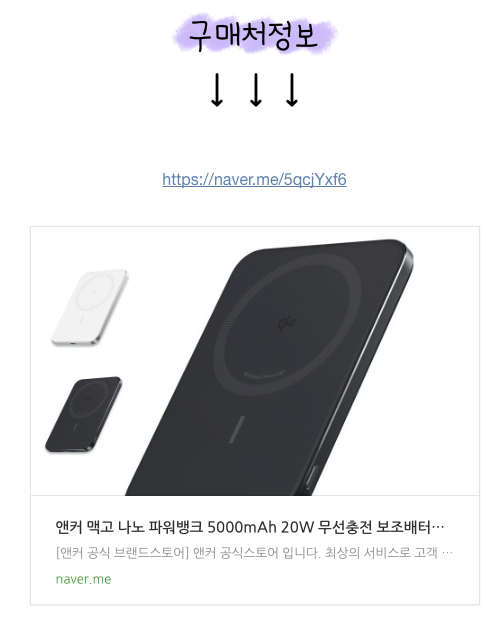 그런데 보조배터리 검색을 좀 해보니 맥세이프 앤커 보조배터리는 슬림해서 꽤 좋아보이더라고요. 마치 핸드폰과 하나로 합쳐진 느낌이였어요.