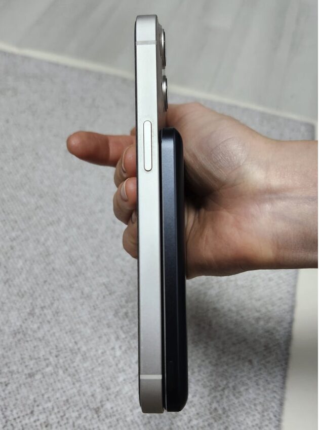 이 제품을 사용하면서 가장 만족스러웠던 부분은 단연 얇은 두께였어요. 시중에 나와 있는 보조배터리들은 대부분 뭉툭하고 무거워서 핸드폰 뒤에 붙이면 손목에 무리가 가곤 했거든요. 그런데 이 모델은 두께가 고작 8.6mm밖에 되지 않아서 핸드폰에 부착한 상태로 조작해도 이질감이 거의 느껴지지 않았어요.