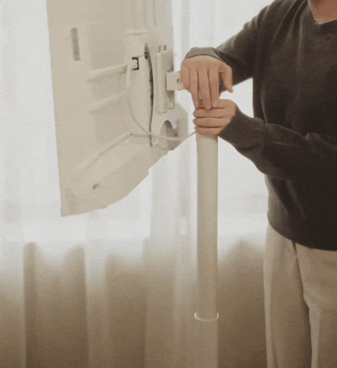 처음 제품을 설치하고 나서 느꼈던 유일한 단점은 전원 케이블의 정리였어요. 이동식 제품이다 보니 이동 거리에 따라 선이 짧게 느껴질 수도 있고, 바닥에 끌리는 선이 미관상 조금 신경 쓰이더라고요. 깔끔한 화이트 인테리어를 원하시는 분들이라면 처음에 선을 어떻게 숨길지 고민이 되실 거예요.