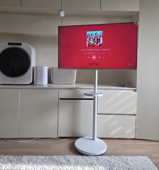 하지만 저는 다이소에서 파는 벨크로 타이나 전원선 정리함을 활용해서 스탠드 기둥 뒤로 깔끔하게 고정했더니 금방 해결됐어요. 사실 선 정리의 번거로움을 감수하고서라도, 이 제품이 주는 이동의 자유로움은 포기할 수가 없더라고요. 만약 다시 선택하라고 해도 일반 벽걸이 TV보다는 무조건 이 제품을 다시 살 것 같아요.