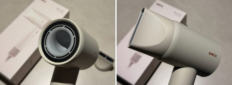 성능이 아무리 좋아도 드라이기가 무거우면 손목에 무리가 가서 금방 피로해지기 마련이죠. 유닉스 에어스피더는 본체 무게가 360g으로 아주 가벼운 편에 속해서 긴 머리를 다 말릴 때까지 손목에 부담이 거의 없었어요. 콤팩트한 사이즈 덕분에 그립감도 훌륭해서 손이 작은 분들이나 아이들이 쓰기에도 적당해 보였어요.