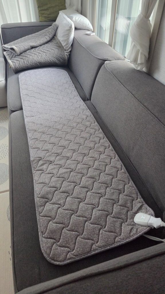 실제로 써보니 아주 사소하게 아쉬운 점이 하나 있었습니다. 처음 배포 상태에서 바로 전원을 켰을 때는 생각보다 뜨겁지 않다고 느낄 수 있는데요, 이건 제품이 침대나 소파 전용이라 열이 위로 흩어지기 때문입니다. 하지만 상세페이지 안내대로 처음에 고온으로 2~3시간 길들여주고 위에 얇은 담요나 요를 하나만 덮어두면 금방 후끈해집니다. 이 가격대와 안전성을 생각하면 충분히 납득할 수 있는 수준이에요.