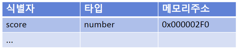 2. 심볼 테이블에 score 식별자에 대한 메모리 주소, 데이터 타입, 스코프를 저장한다.