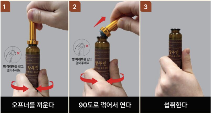 이 제품은 일반적인 병 음료와 달리 전용 오프너를 사용해야 합니다. 병 아래쪽을 잡고 오프너를 끼워 90도로 꺾어서 열어야 하는데, 처음에는 손에 익지 않아 조금 조심스럽더라고요. 하지만 이는 살균 공정을 거친 유리병의 밀봉력을 유지하기 위한 방식이라 익숙해지면 오히려 내용물이 안전하게 보호된다는 느낌을 줍니다. 또한 액상형 특성상 원료 성분에 의한 침전물이 생길 수 있어 마시기 전에 매번 흔들어주어야 하는 작은 번거로움이 있습니다.